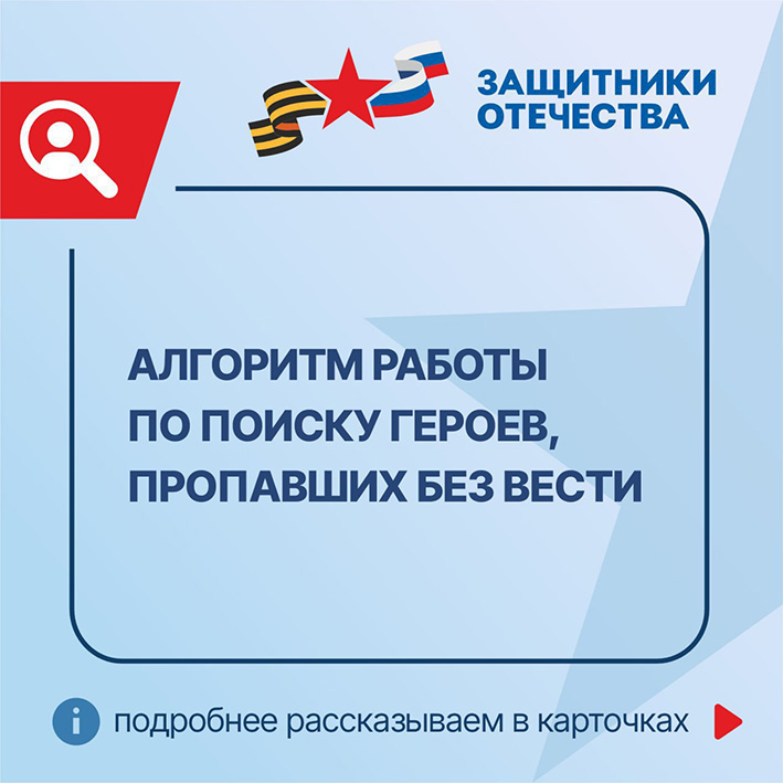Фонд «Защитники Отечества» работает по разработанному алгоритму действий для поиска пропавших без вести участников СВО, который показал свою эффективность.