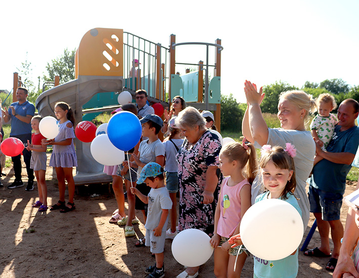 В пятницу, 11 июля, жарким вечером жители близлежащих улиц принимали поздравления – их инициатива воплотилась в жизнь. Теперь у детей есть новая современная площадка для игр, которая располагается рядом с ул.Солнечная. Жители отметили, что детская площадка интересная, удобная и безопасная. Здесь дети смогут играть, общаться, развивать физическую активность и отвлечься от мобильных телефонов.