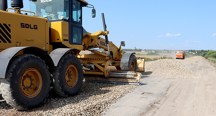 Михаил Васильков рассказал, что уже выполнено щебеночное основание и два слоя асфальта. Сейчас рабочие трудятся над съездами. Затем планируется подсыпать обочины щебнем.