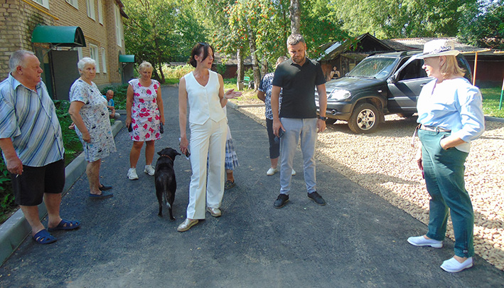 У дома №1 по ул. Космонавтов к проверяющим никто из жителей не вышел. Там была заасфальтирована площадка перед центральным входом в дом. По словам главы, нареканий со стороны жителей не поступало. Просили завезти земли, чтобы разровнять газон с одной стороны от входа.