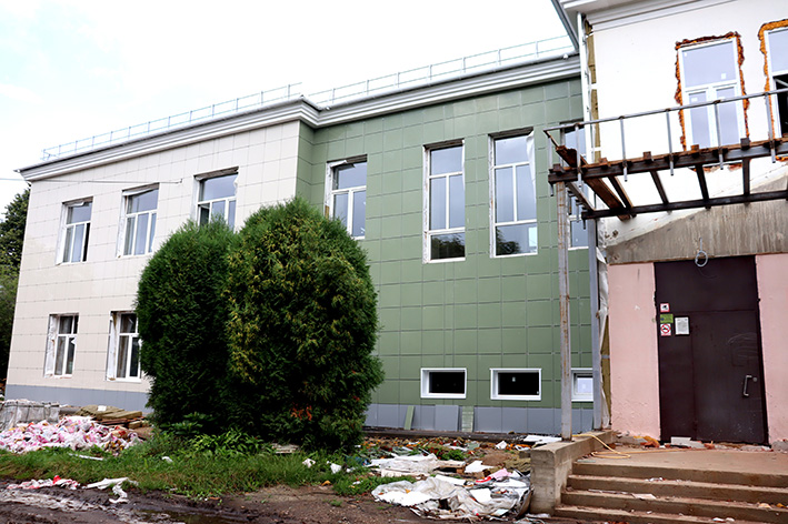 На объекте заканчивается финишная чистовая отделка и установка холодного и горячего водоснабжения. Ведется монтаж входной группы и монтаж фриза по входной группе. «Работы выполнены на 95% и скоро будут закончены», уточнил Николай Шумарин.