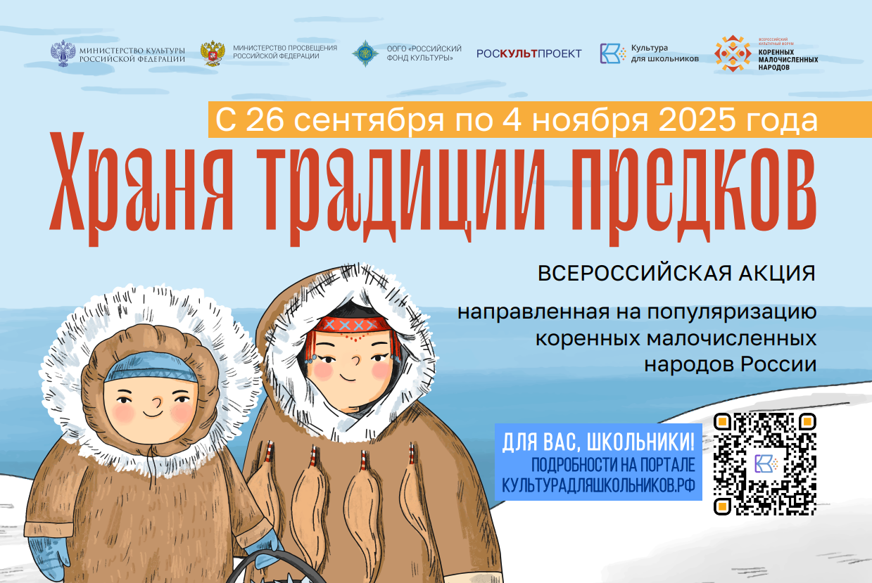 26 сентября стартует всероссийская акция «Храня традиции предков», организованная в рамках проекта «Культура для школьников» и Всероссийского культурного форума коренных малочисленных народов России.