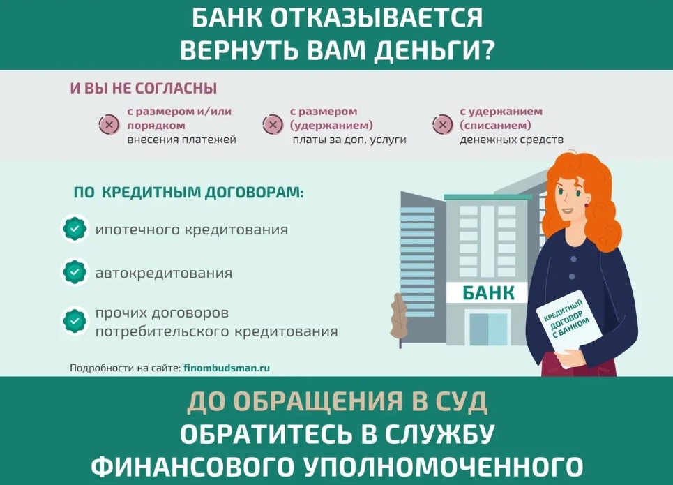 Кроме того, вы можете обратиться к финансовому уполномоченному, если у вас возник денежный спор со страховой компанией, МФО, НПФ, КПК или ломбардом.
