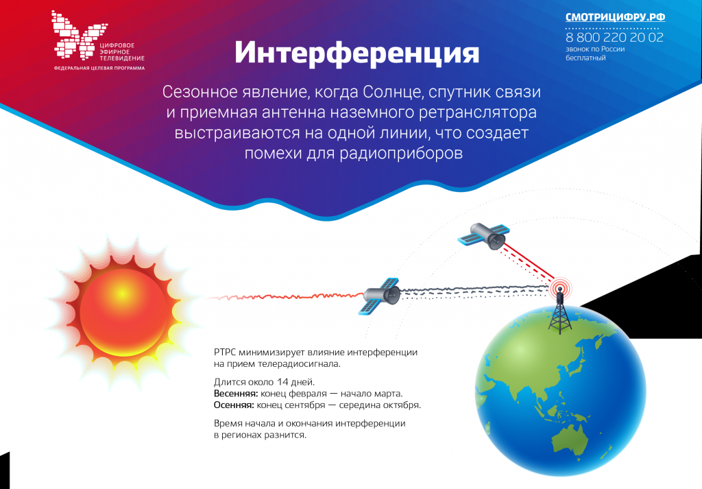 Это явление, хотя и не угрожает стабильности цифрового эфирного телевидения в регионе, может всё же вызвать незначительные, кратковременные помехи. В эпоху аналогового телевещания солнечная интерференция приводила к серьёзным сбоям изображения и звука. Однако, благодаря современным цифровым технологиям, используемым РТРС (Российская телевизионная и радиовещательная сеть), воздействие солнечной интерференции сведено к минимуму. Влияние солнечного излучения будет малозаметным для подавляющего большинства телезрителей.