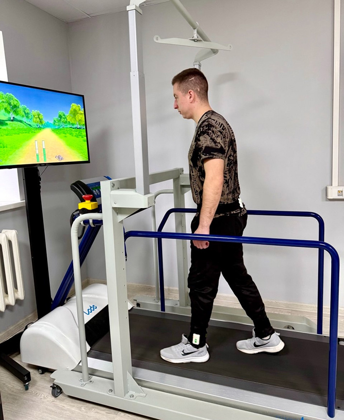 Для восстановления после повреждений нижних конечностей применяются отечественные тренажёры «ОРТОРЕНТ CARMINA» (брусья‑лестница) и имитатор опорной нагрузки «Корвит», а также система с биологической обратной связью «Стэдис» (компания «Нейрософт») для восстановления навыков ходьбы. Параллельно проводится психосоматическая коррекция на ПРАК — для восстановления нервной системы.