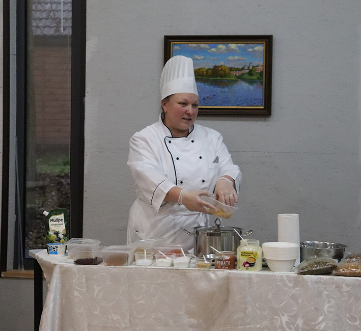 Главный волонтер и создатель сухих душей и супов, Наталья Ветрова, провела дегустацию сухого борща. Каждый мог попробовать и оценить суп, приготовленный с любовью.