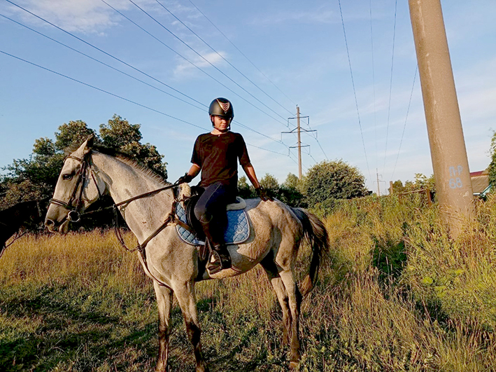 13-летняя Ева Оборина уже полтора года занимается верховой ездой на лошади Ладья Ухтохмы под руководством Надежды Горбачёвой. Для Евы общение с лошадьми — это не просто тренировки, а источник ярких впечатлений и положительных эмоций. Во время занятий верховой ездой она чувствует себя легко и свободно, забывая обо всём остальном.