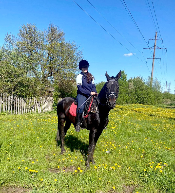 «Мою лошадь зовут Давлат. В этот вид спорта я мечтала попасть ещё с детства, но не было возможности. И вот в нашем городе появилась конная секция под руководством Надежды Горбачевой. Я решила попробовать, вдруг что-нибудь получится. Мне очень нравится проводить время с лошадьми, здесь я нахожу умиротворение для своей души», — делится Варя.