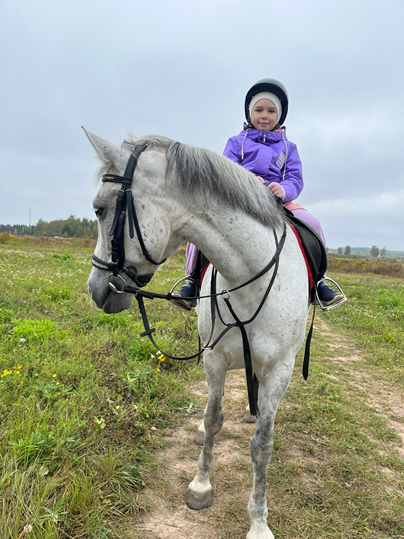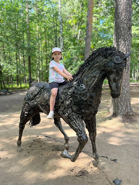 На одном из снимков ей пять лет. Несмотря на свой юный возраст, она не побоялась сесть на сильного жеребца. В парке Степанова Варя позирует на металлическом арт-коне, созданном скульптором-самоучкой Владимиром Волковым. А вот Варвара запечатлена на конной прогулке по каналу Волго-Уводь.