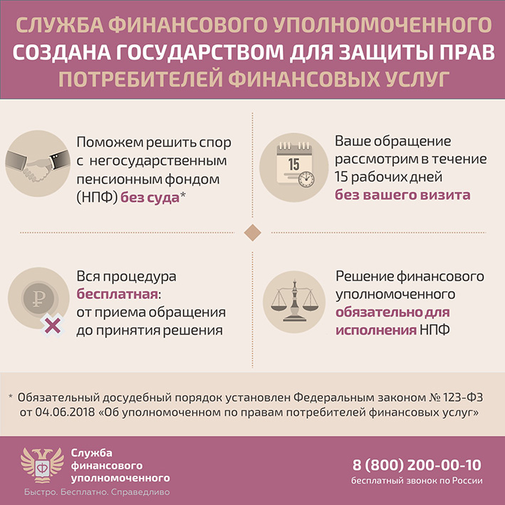 Самое важное: если финансовый уполномоченный примет решение в вашу пользу, негосударственный пенсионный фонд по Закону обязан его исполнить.