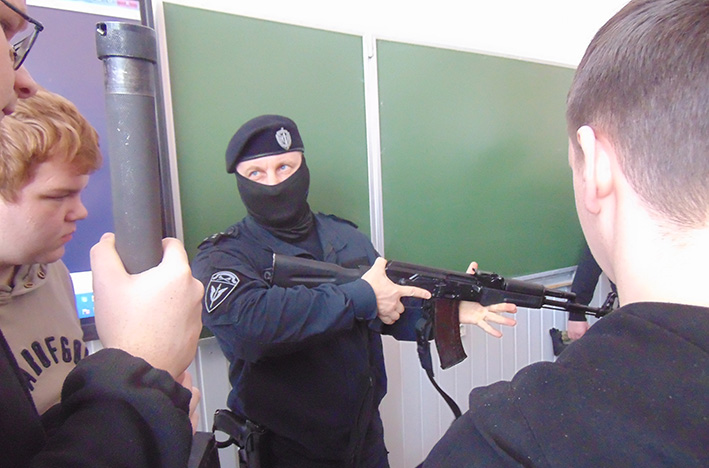 Встреча носила профориентационный и информационный характер: действующие сотрудники этих важных подразделений охраны законности и правопорядка рассказали о своей нелёгкой службе, о том, по каким критериям идёт отбор будущих сотрудников и пригласили в свои дружные ряды. Росгвардейцы также дали рекомендации, как действовать в случае террористической угрозы – например, при возможной атаке беспилотника, показали и даже дали потрогать, подержать в руках, примерить своё оружие и экипировку, поучили навыкам обращения с оружием. А ещё гости ответили на вопросы, рассказали об особенностях службы и в обычных условиях, и в «горячих точках».