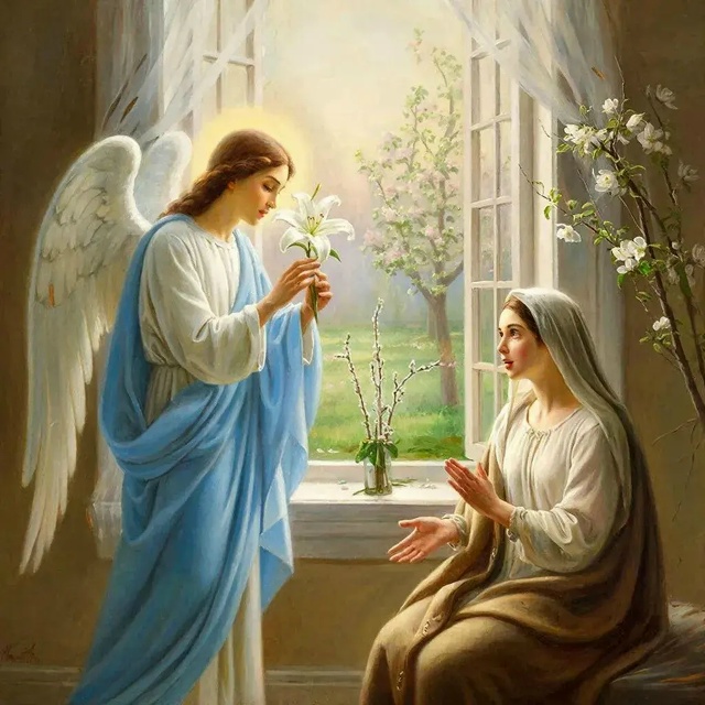 События Благовещения Пресвятой Богородицы подробно описаны в Евангелии от Луки. В шестой месяц после зачатия Елисаветой святого Иоанна Предтечи архангел Гавриил был послан от Бога в город Назарет к Деве Марии с радостной вестью о том, что от неё родится Спаситель мира.