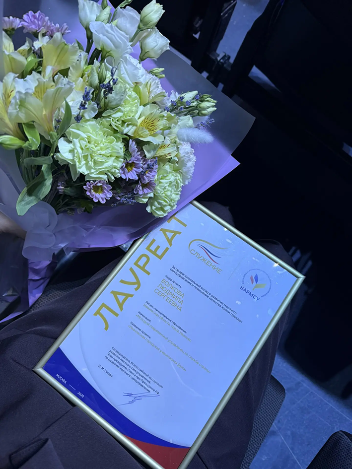 В число лауреатов премии «Служение» вошла главный специалист управления образования администрации города Иванова Людмила Волкова, представившая проект «Ивановская городская ученическая дума» в номинации «Молодой современный управленец на службе страны».