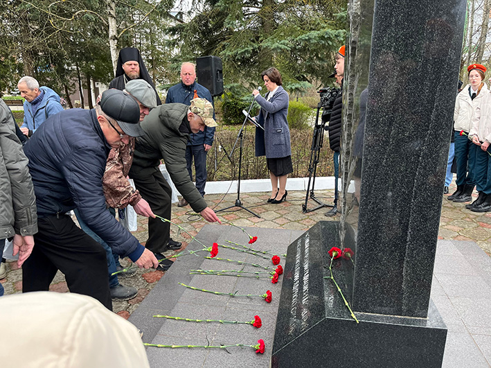Память героев-ликвидаторов почтили минутой молчания, после чего к памятнику возложили цветы.