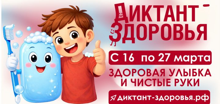С 16 по 27 марта 2026 года Роспотребнадзор запускает первый тематический трек Всероссийской санитарно-просветительской акции «Диктант здоровья» — «Здоровая улыбка и чистые руки». Модератором проекта выступает ФБУН «Новосибирский НИИ гигиены» Роспотребнадзора. Проект реализуется в...